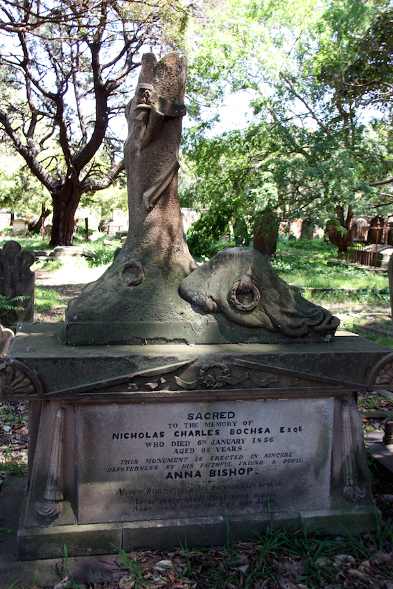 In 1856, opera singer Anna Bishop erected what can only be described as a Victorian death monument – with all the histrionics that implies – to her lover, Nicholas Bochsa. Nicholas had been the imperial harpist to Emperor Napoleon of France and had given lessons to Empress Josephine, fuelling a passion for harp-playing among Parisian ladies.