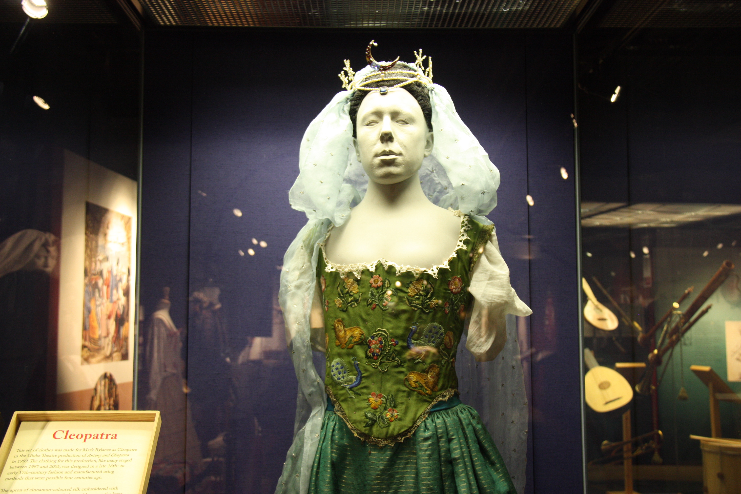 More than 400 years after Shakespeare wrote the play, a female player, Jessie Buckley, is treading the boards as Miranda. Most plays at the Globe are now performed by a mixed cast. That said, in a nod to tradition, the new Globe opened in 1997 with a performance of Henry V by an all-male cast in authentic Elizabethan costume. Similarly, in 1999, actor Mark Rylance famously strutted his stuff in the lead female role in Antony and Cleopatra, teetering on the brink of incredible platform ‘overshoes’ called chopines. These are on display in the Globe’s exhibition area, along with Cleopatra’s delicately hand-embroidered corset and silk skirt (pictured above).